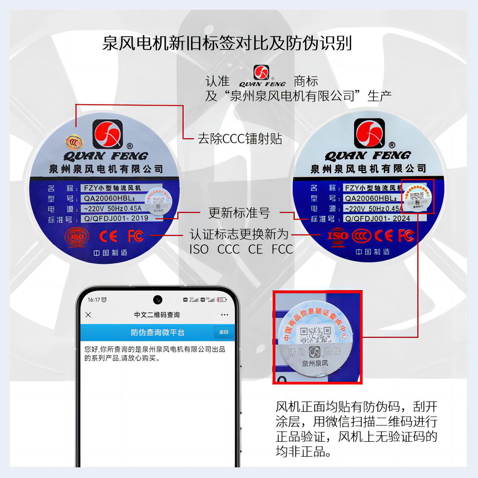 泉風(fēng)軸流風(fēng)機(jī)標(biāo)簽及標(biāo)準(zhǔn)號(hào)更新
