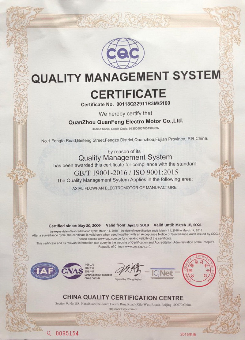 CQC質(zhì)量管理體系認(rèn)證換證完成